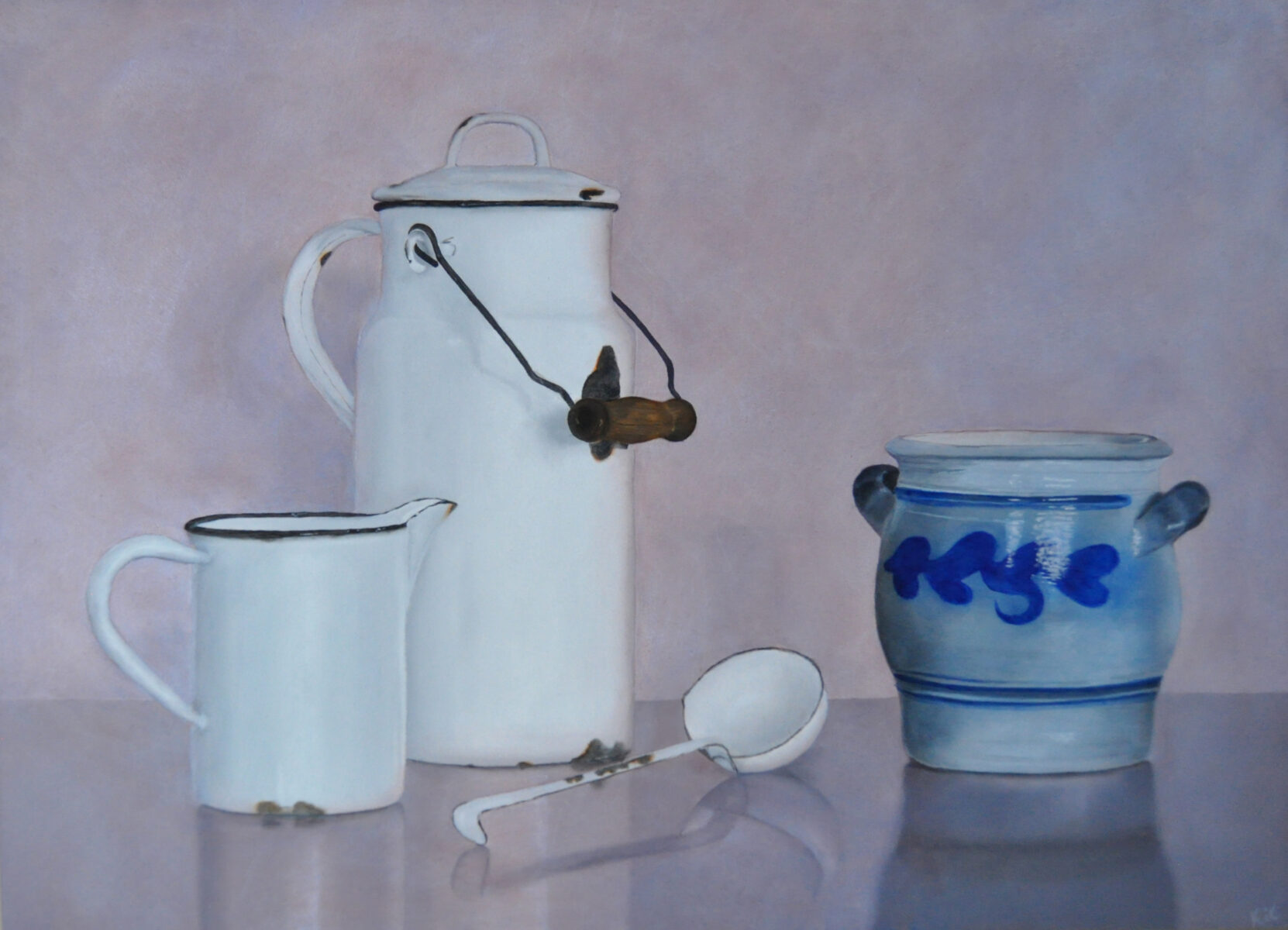 Stilleven met kannetjes (olieverf op paneel 40x30 cm) - 2015  *NIET TE KOOP*